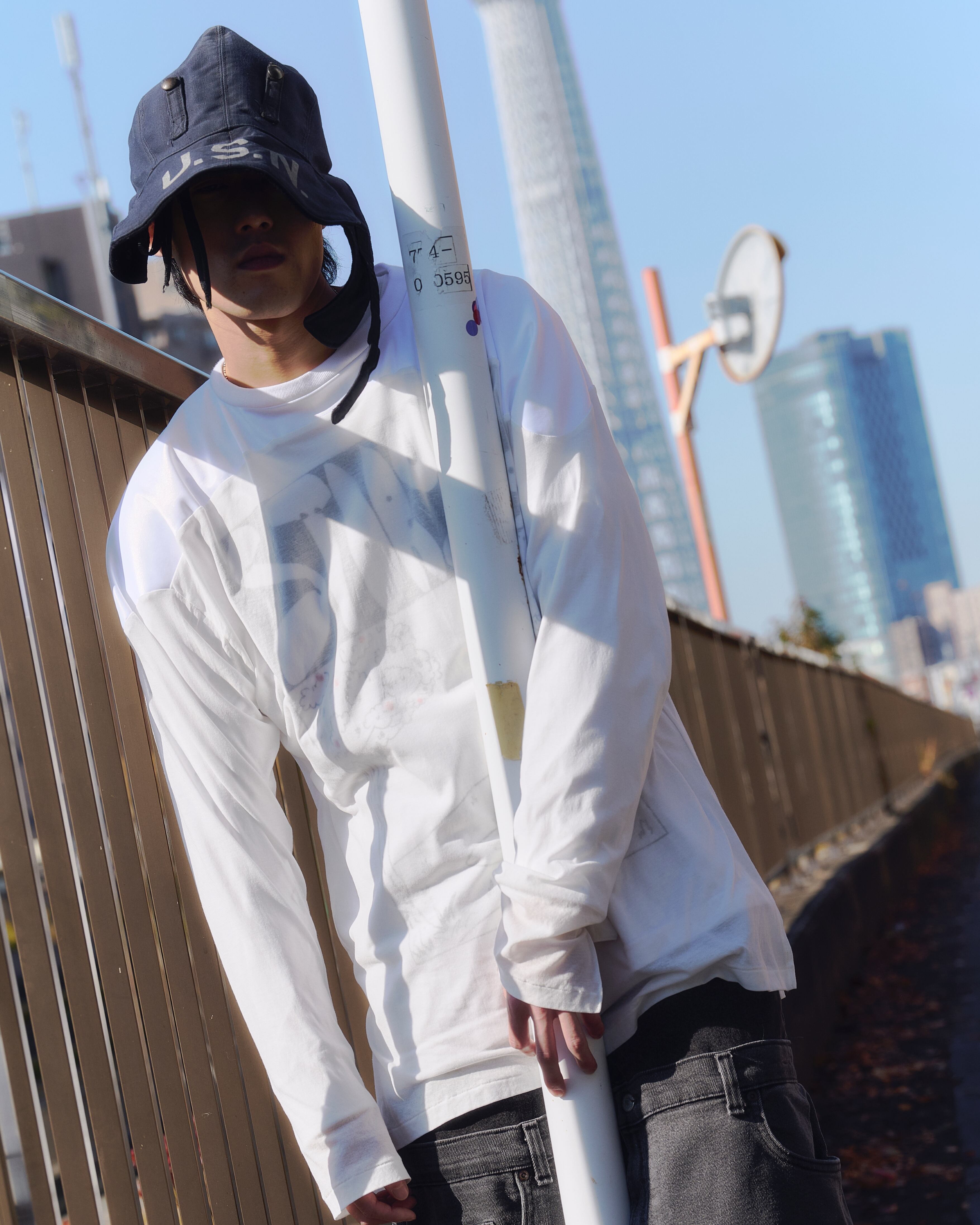 古着のフットボールジャージから着想を得たシンプルなデザインに異素材同士の違和感を加えることで、アイテム自身の存在感を強調しています。